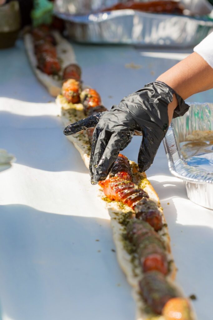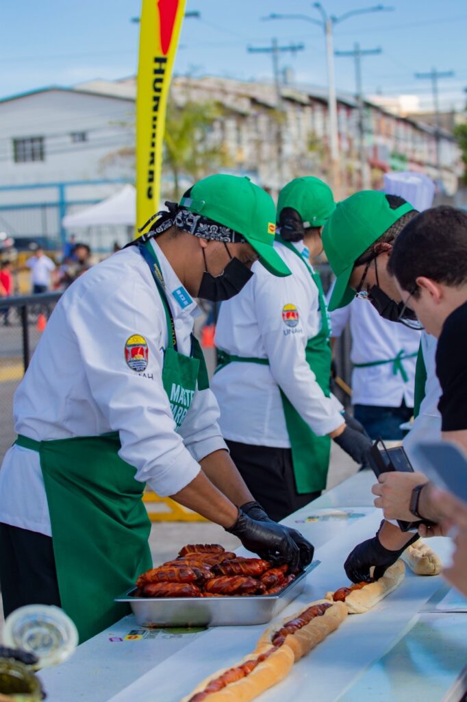Con una preparación meticulosa y coordinación precisa, el equipo inició mezclando 150 sobres de Chimichurri Maggi® de la Huerta, para luego cocinar casi 1000 unidades de chorizo Progcarne las parrillas y colocarlos sobre más de 180 barras de pan.